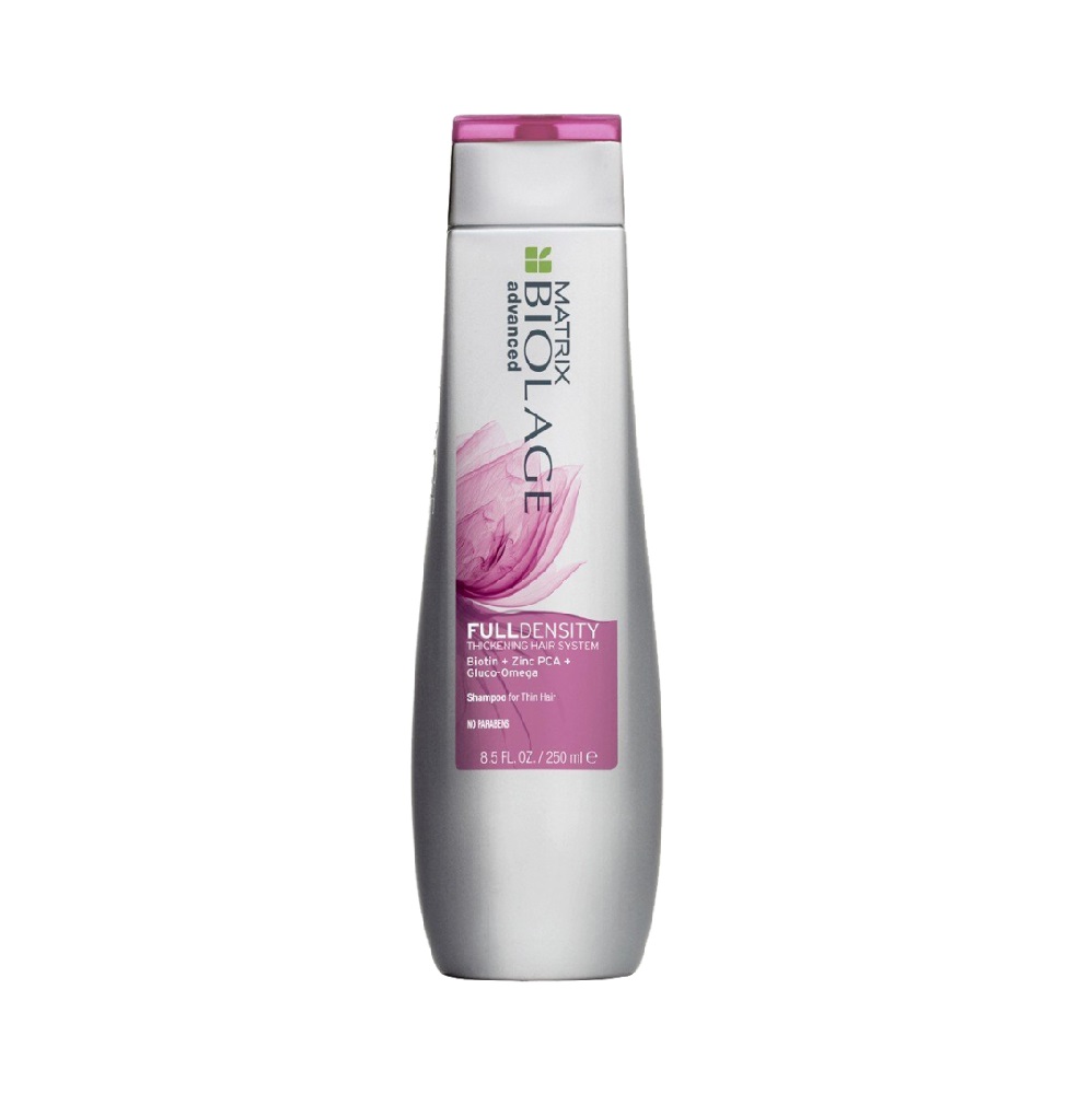 Managing frizzy, damaged hair can be quite the chore. Biolage Advanced Full Density Shampoo is the ideal cleansing method for thin hair. This anti-frizz shampoo, formulated with biotin, zinc PCA, and Gluco-Omega Blend, gently cleanses hair, removing follicle clogging impurities, instantly making hair look and feel healthier. When used as a hair treatment with Full Density Conditioner, hair breakage is significantly reduced, creating fuller-looking, thicker-feeling hair. For maximum results, use this shampoo with Full Density Densifying Spray Treatment, which works on the surface of each hair strand to expand the hair diameter. Paraben free.