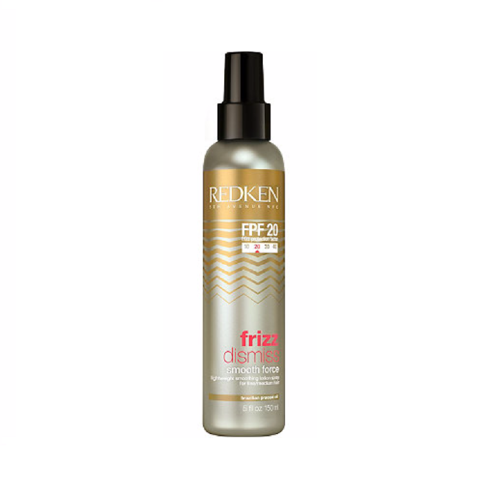 Frizz happens. Dismiss it with Redken Frizz Dismiss Smooth Force Lightweight Spray. Ideal for fine medium hair, Smooth Force is suitable for low to high humidity with silicones to provide lightness and softness.