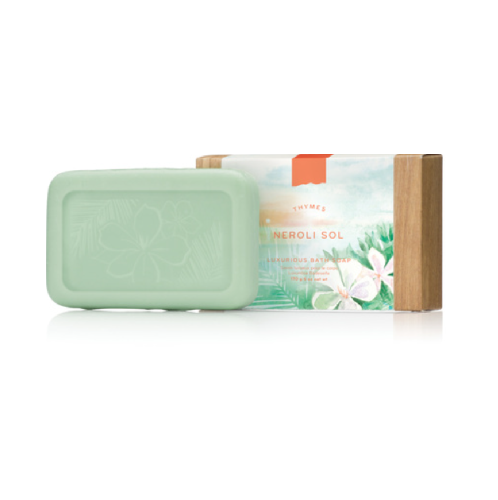 Cleanse yourself in pure luxury with this triple-milled, all vegetable Neroli Sol Bar Soap rich with aloe, certified organic coconut oil, and blue green algae extract. The decadent formula and tropical floral fragrance blend together to bring forth a blissful bathing experience.